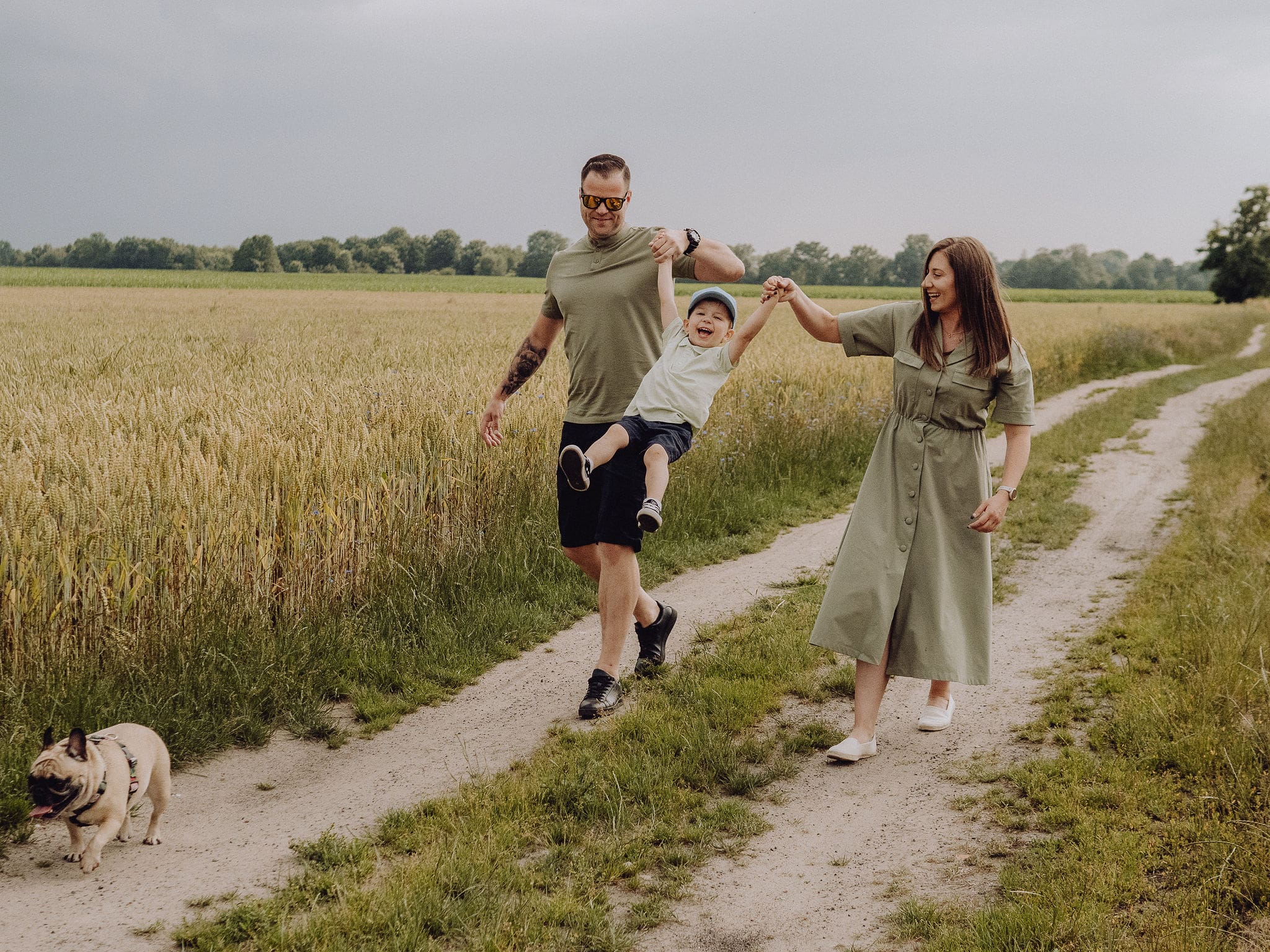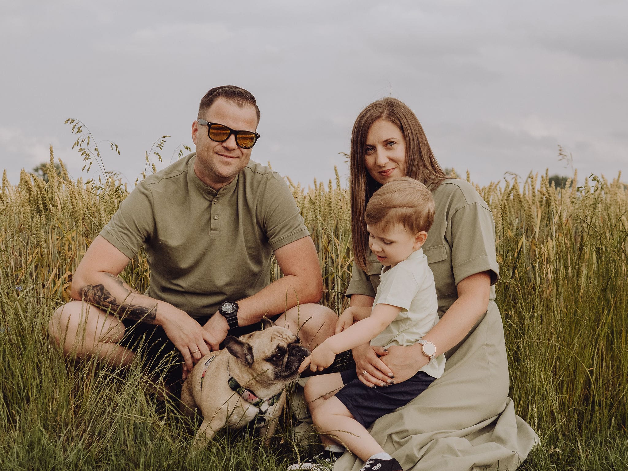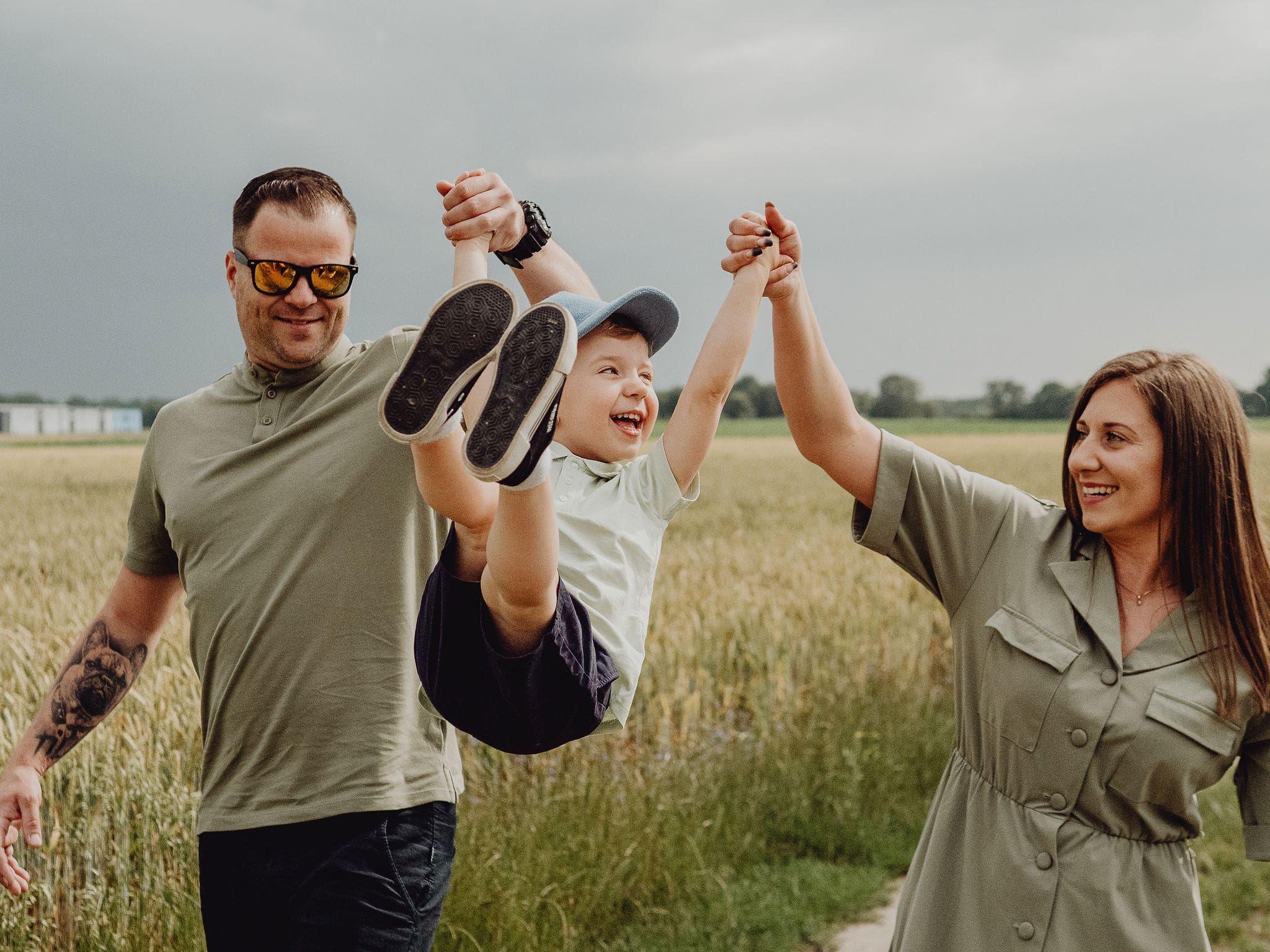 Czasem najpiękniejsze zdjęcia powstają w okolicznościach, które na pierwszy rzut oka wydają się… mało obiecujące. Tak było podczas tej sesji rodzinnej – zaczynaliśmy ją dosłownie chwilę przed burzą. Niebo z każdą minutą stawało się coraz ciemniejsze, ciężkie od granatowych chmur, a w powietrzu wisiała już zapowiedź deszczu.