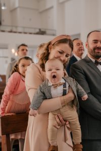 Jako fotograf rodzinny z Wrocławia miałam przyjemność towarzyszyć rodzinie Leona podczas jego wyjątkowego dnia – chrztu świętego. Rodzice wybrali pełny reportaż, obejmujący przygotowania w domu, zdjęcia z kościoła oraz kadry z przyjęcia. Dzięki temu powstała spójna historia pełna emocji, bliskości i pięknych detali.
