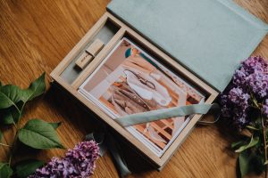 Gotowe zdjęcia trafiły do eleganckiego pudełka z grawerem, razem z pendrivem – to ponadczasowa pamiątka, do której możecie wracać latami.