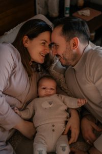 Kiedy minął już typowy czas na sesję noworodkową, delikatnie się przypomniałam. Bez presji. Bez „to ostatni moment”. Patrycja odezwała się wtedy, gdy byli gotowi. I właśnie wtedy zrobiliśmy sesję.