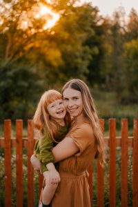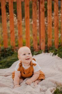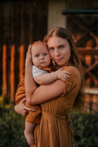 Sesja odbyła się w godzinach wieczornych, podczas złotej godziny. Miękkie światło pozwoliło zachować naturalne kolory skóry i delikatny kontrast, bez ostrych cieni. Plener wiejski dał przestrzeń i prostotę, które dobrze współgrają z minimalistycznym stylem zdjęć.