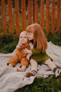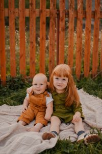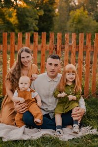 Rodzinna sesja plenerowa zrealizowana na wsi. Mama i dzieci skorzystali z mojej garderoby, wybierając lniane ubranka w naturalnych, stonowanych kolorach. Ubrania z lnu i bawełny dobrze sprawdzają się w plenerze – są wygodne dla dzieci i tworzą spójną całość na zdjęciach.