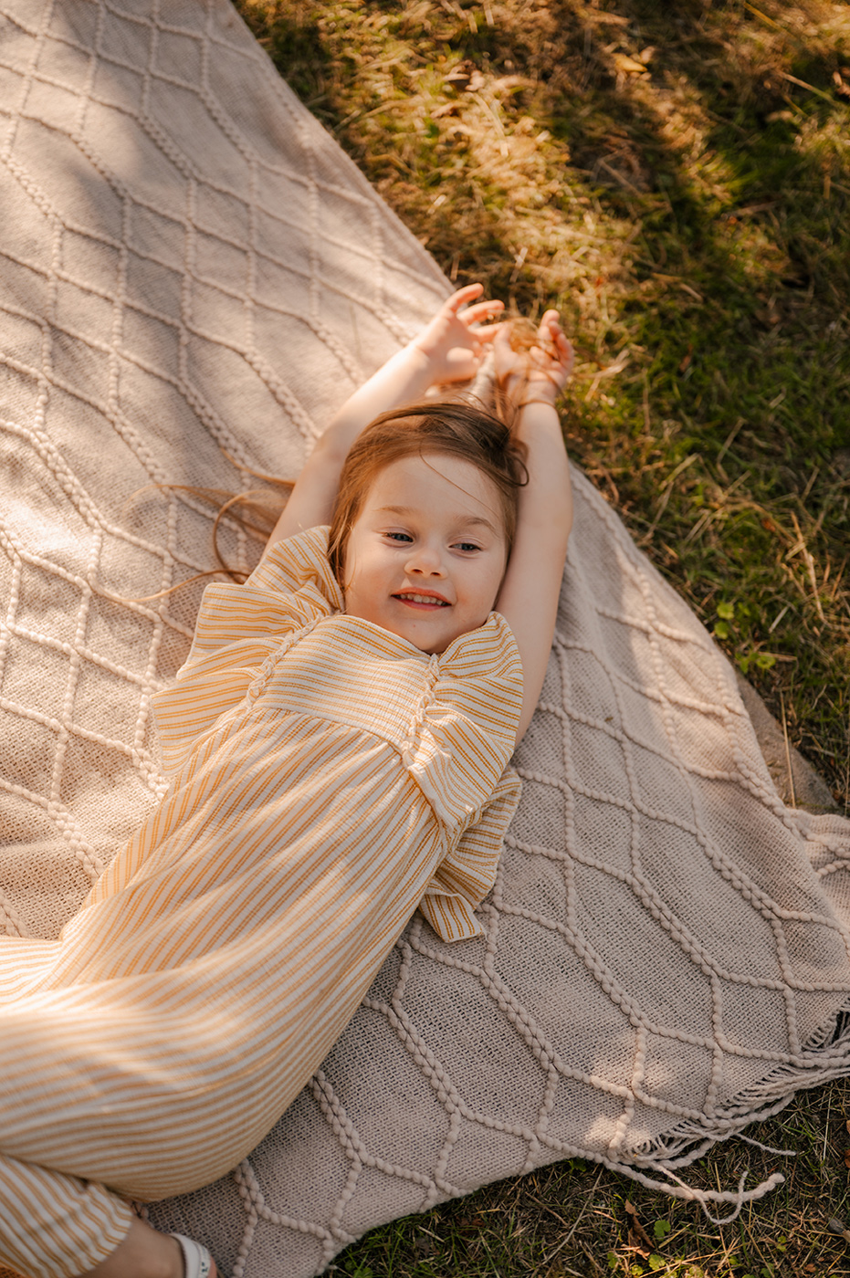 Wszystkie ubrania uszyte są z lnu, wełny, bawełny i muślinu, by zapewnić Wam pełen komfort i piękny wygląd na zdjęciach.
